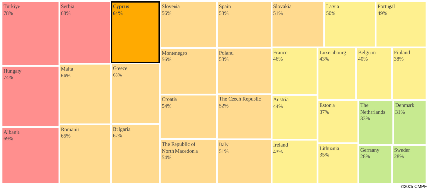 In Cyprus, the CMPF partnered with Christophoros Christophorou, who conducted the data collection, scored and commented the variables in the questionnaire and interviewed relevant experts. The report was reviewed by CMPF staff. Moreover, to ensure accurate and reliable findings, a group of national experts in each country reviewed the answers to particularly evaluative questions (see Annexe 2 for the list of experts).
