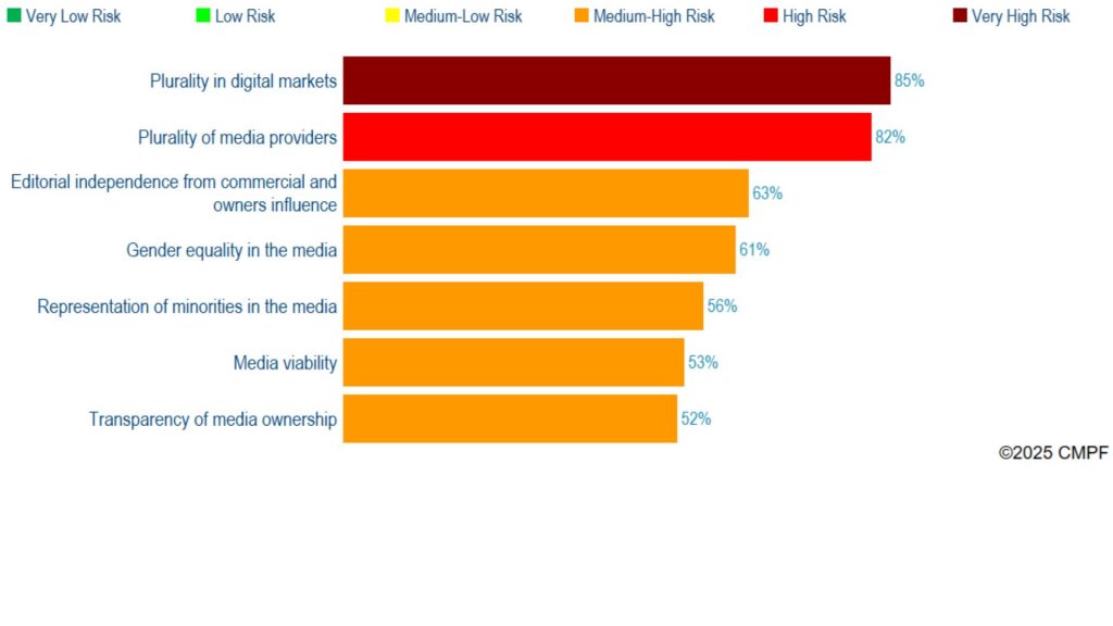 Plurality in the media is one of the highest risk-scoring indicators, just after other indicators related to the economic dimension, such as high concentration and its possible impact on editorial autonomy. While the economic threats can be understood based on the structural characteristics of the media markets, the persistent risks related to gender inequality in the media are hardly compatible with the evolution in our societies and the growing role of women in the profession.